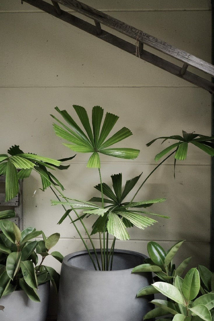 Commonly known as the Australian Fan Palm. This unique palm has large round fronds when mature.